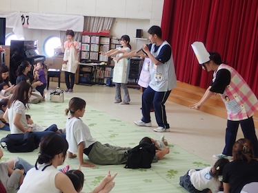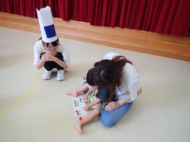 エプロンシアターではいろいろな形の食べ物が登場しました!正解者続出でびっくり!