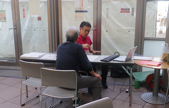 この教室は、選手、大会関係者や一般来場者に健康管理や体力づくり及び健康づくりの啓発を行うもので、垂直跳び、棒反応時間、全身反応時間の測定やヘモグロビン、血圧の測定を行い、測定結果に対する現状の分析や健康相談を行いました。