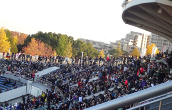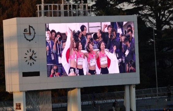 午後からは駒沢陸上競技場に移動して陸上競技に出場する各国の選手を応援しました。競技場には多くの観客が入っていて手話を使って揃って応援する光景にはとても熱気がありました。そこで日本男子選手が4×100、4×400のリレー2種目で金メダルを獲った瞬間に立ち会うことができました。アスリートの皆さんの頑張る姿に元気をたくさんいただいた一日でした。参加した学生の皆さんも手話技術を一層磨くとともに、インクルーシブな社会を創っていく意義を感じてくれたことと思います。