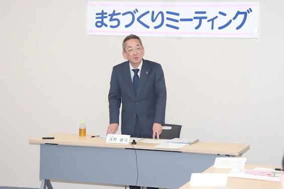 まちづくりミーティングの始まりです。浅野市長さんです。