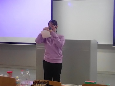 1月21日の子ども教育学科幼稚園教諭・保育士コース1年生の「保育現場参観」最終授業では、岐南さくら認定こども園の先生方をお招きし、様々な実践を通して保育への考え方を学びました。緊張していた学生も、先生の歌に合わせて手を叩きあうなどするうちに、知らない間に保育者としての表現ができるようになっていきました。手作りおもちゃでは、子どもの発達を考えながら保育者が願いを込めて作成することの大切さを教えていただきました。また、牛乳パックで節分の豆を入れるカバンの作成では、安全で、幼児が楽しく作ることのできる援助の方法について、子どもと保育者双方の視点から考えていくことの大切さを教えていただきました。初めての幼稚園教育実習が1月26日から始まります。本コースでは、これからも様々な方法を通して、充実した実習になるようサポートしてまいります。