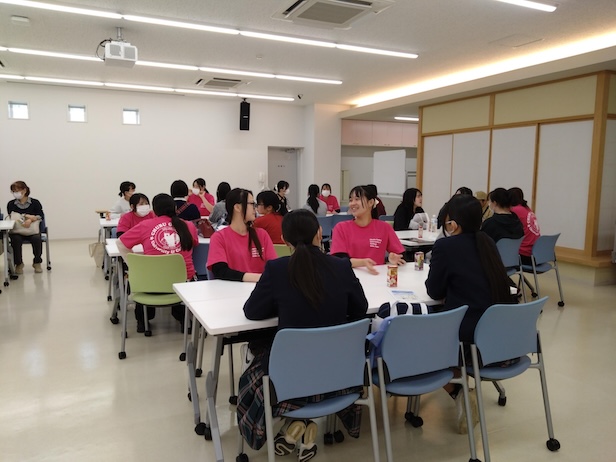 学生と高校生との休憩タイム